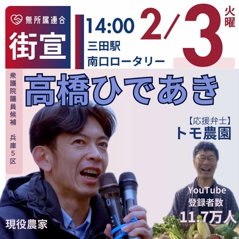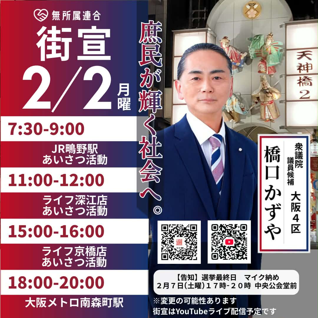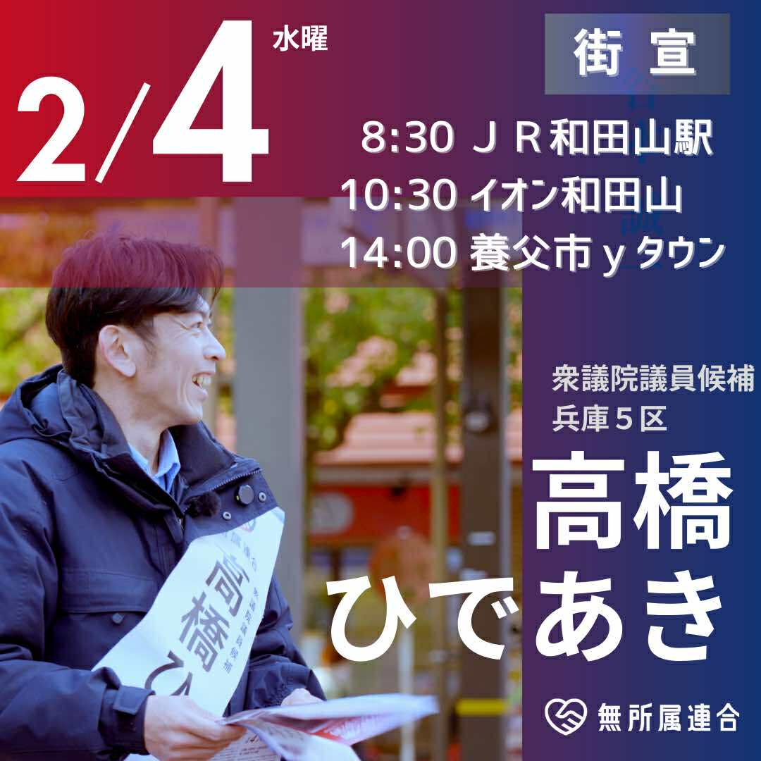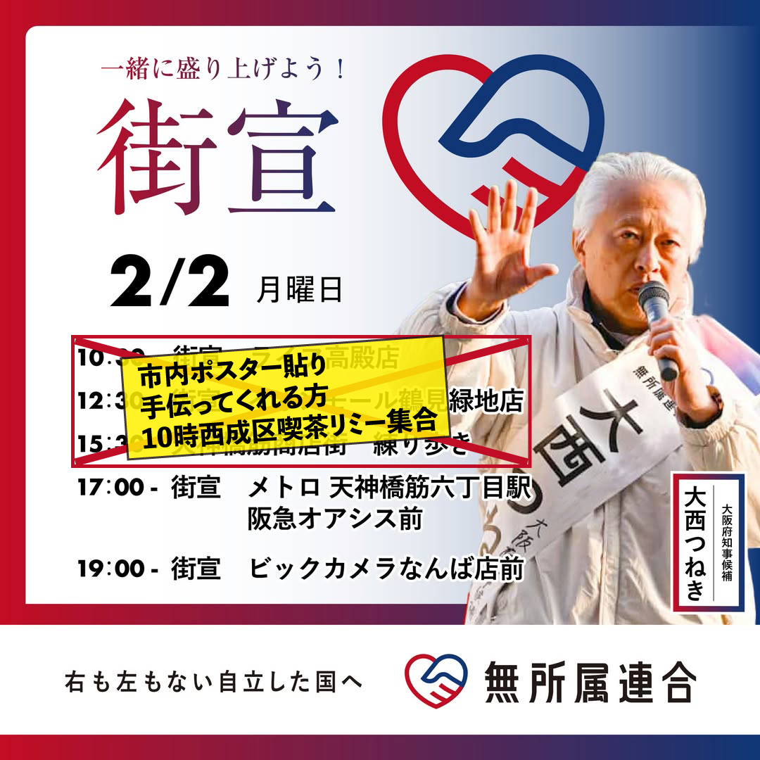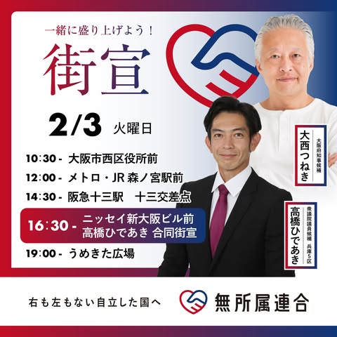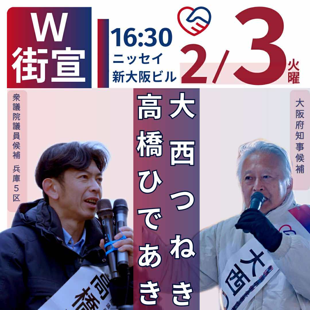2月3日 高橋ひであき&大西つねきの共同街宣予定です