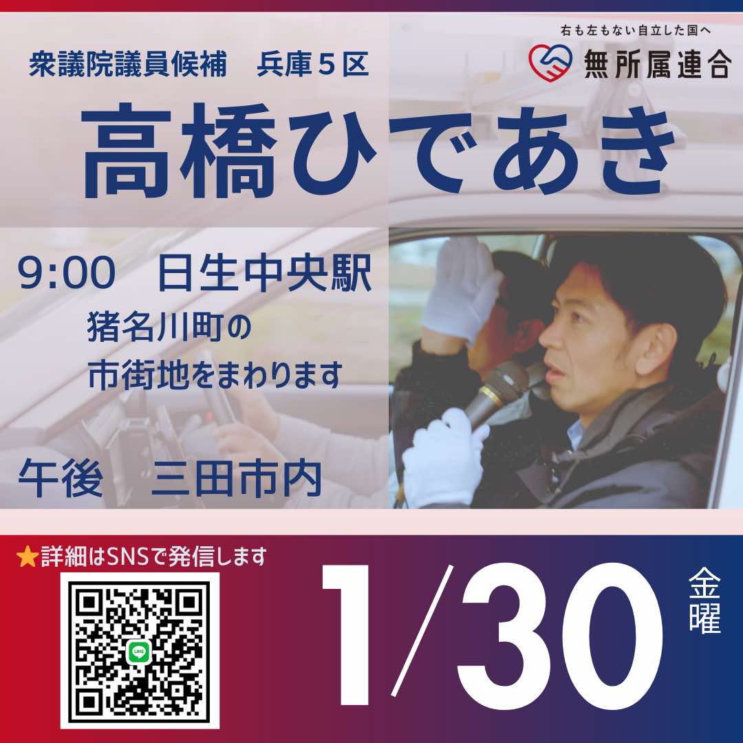 1月30日 高橋ひであきの街宣予定です