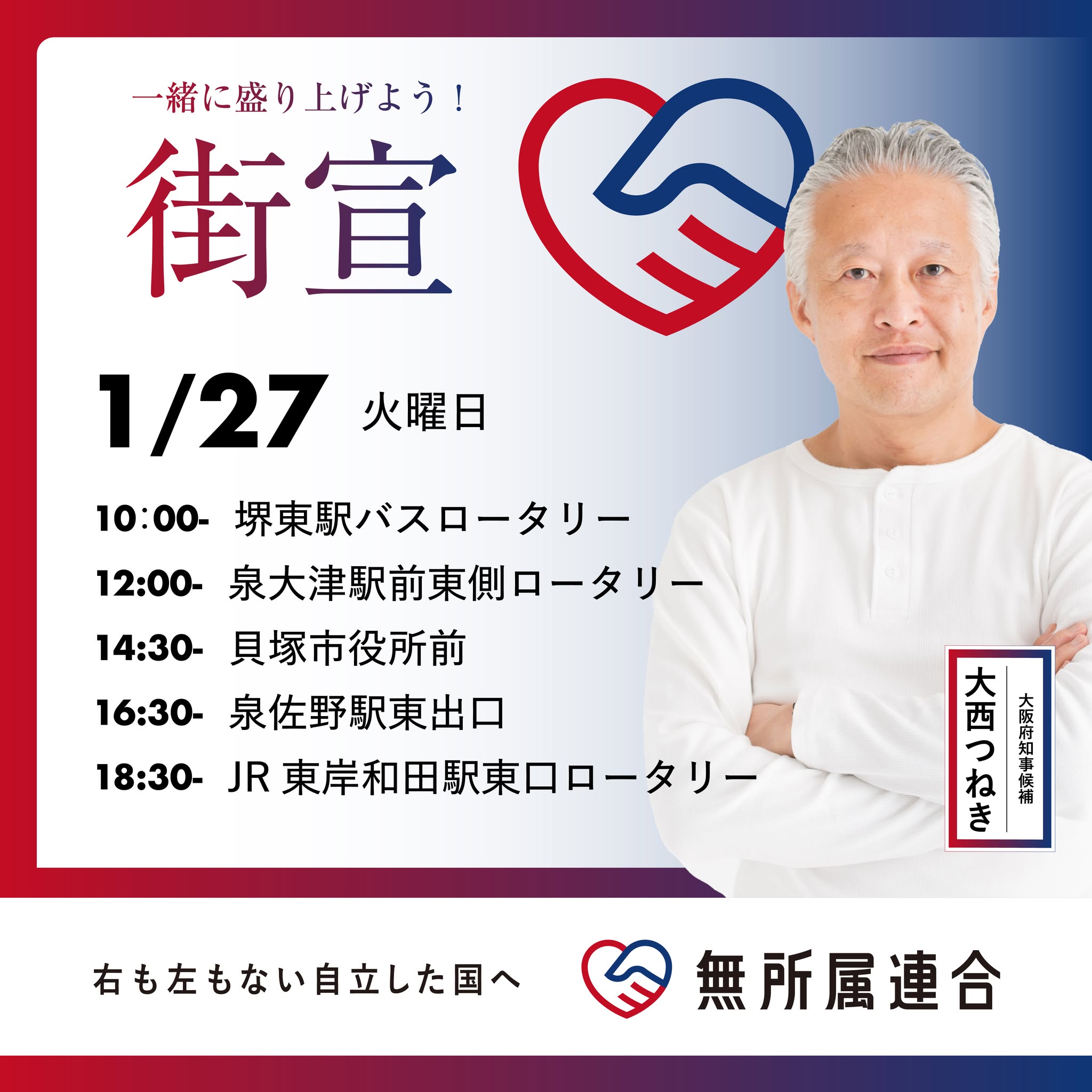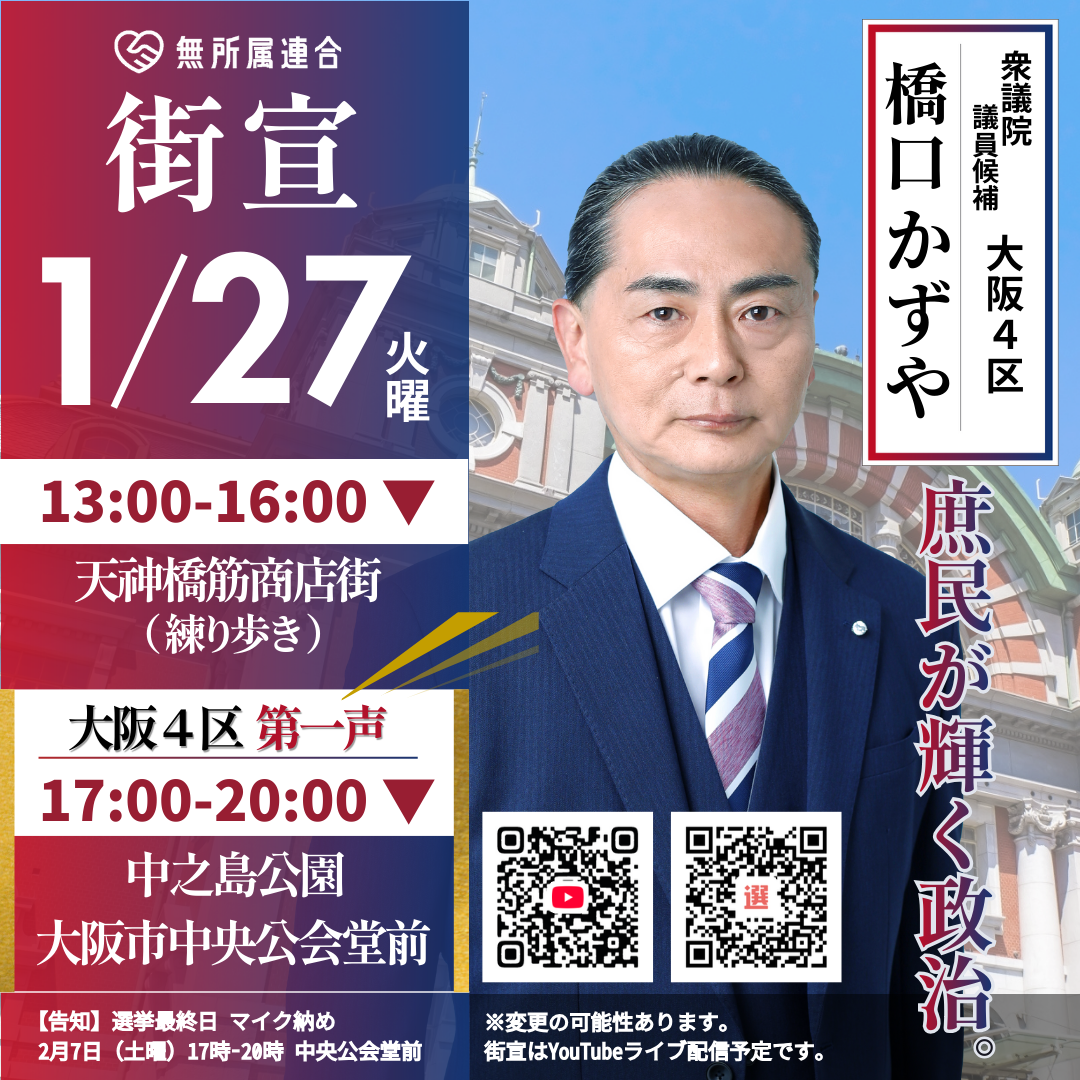 1月27日 橋口かずやの街宣予定です