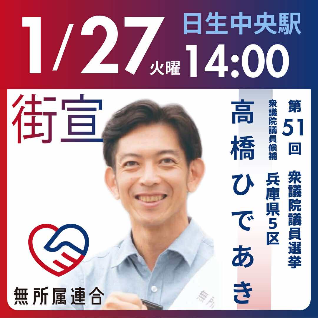 1月27日 高橋ひであきの街宣予定です