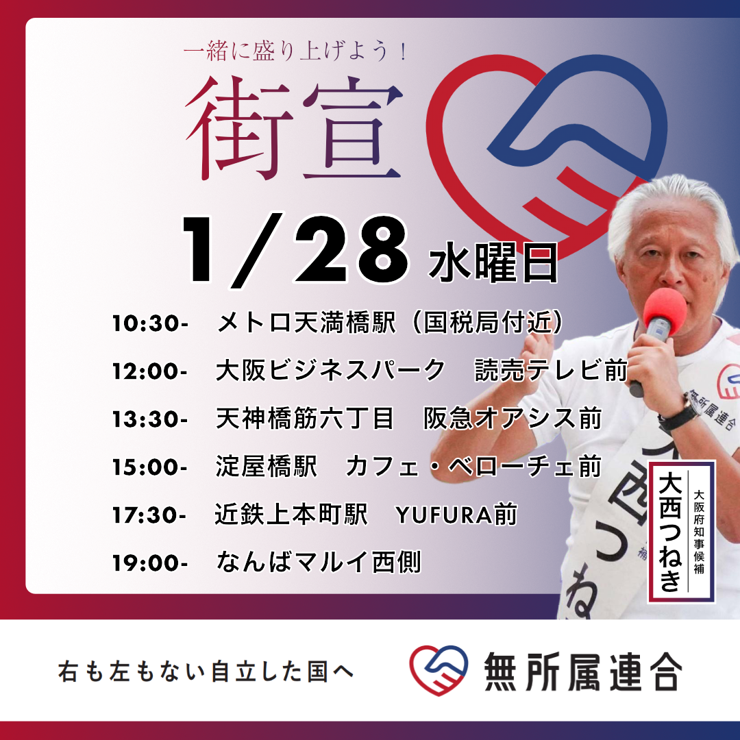 1月28日 大西つねきの街宣予定です