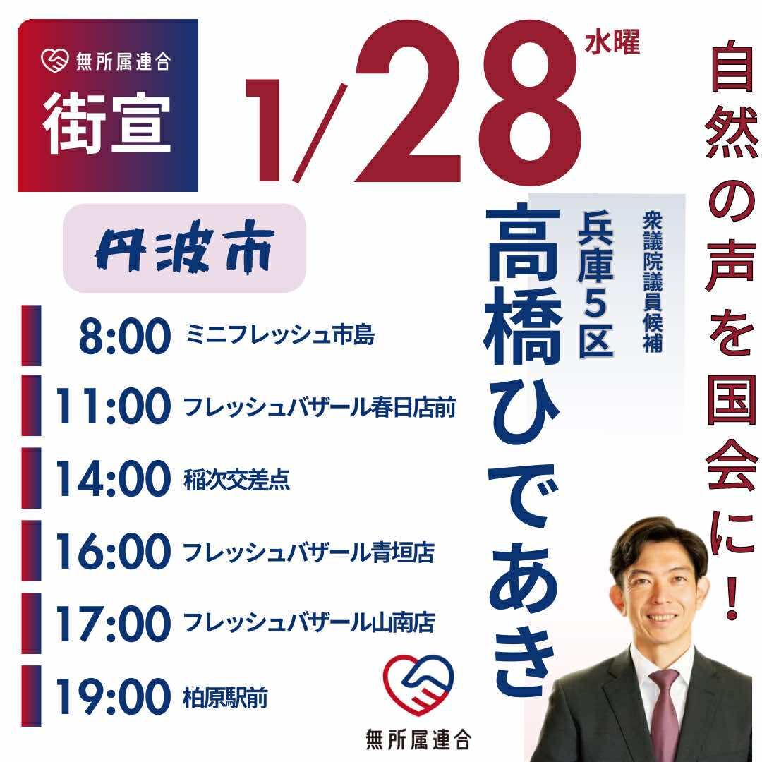 1月28日 高橋ひであきの街宣予定です