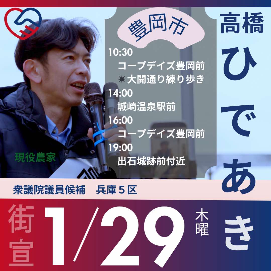 1月29日 高橋ひであきの街宣予定です